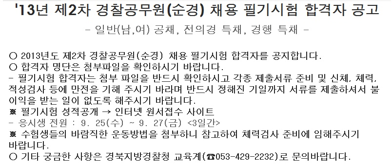 [경북지역] 13년2차 순경시험 필기합격자명단