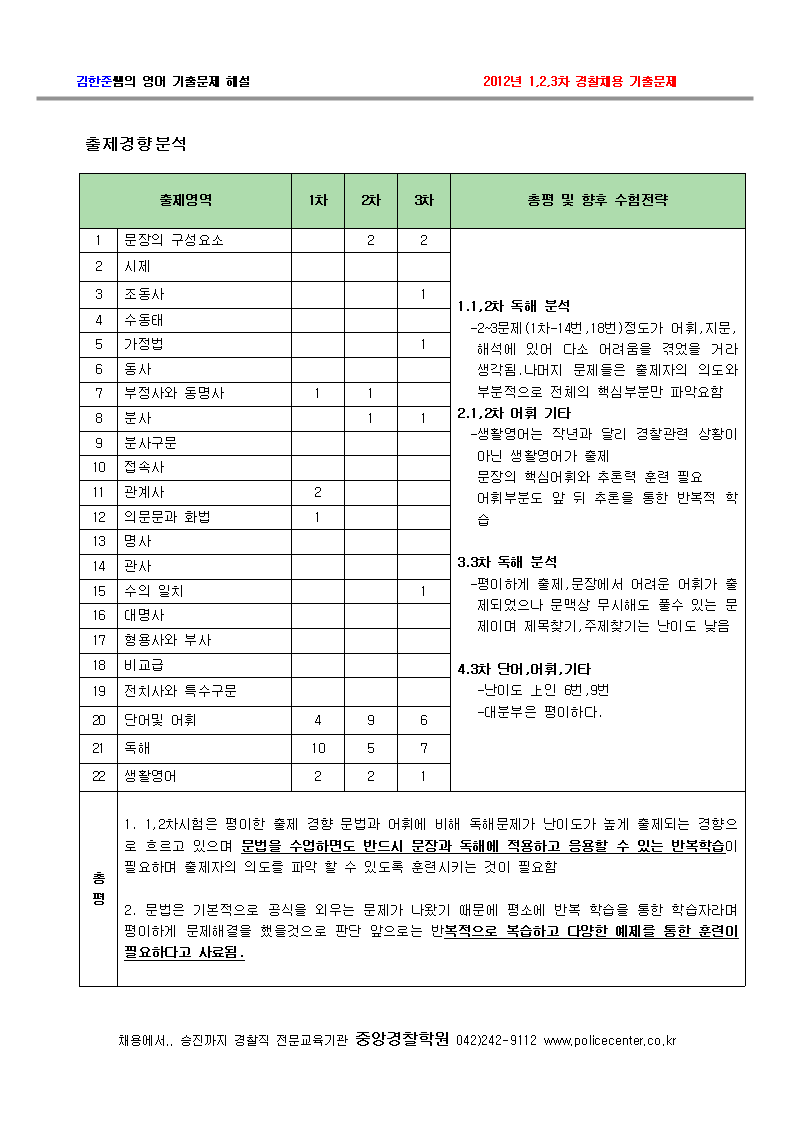 공지 2012년 1차,2차,3차 경찰시험 영어 출제경향(김한준)