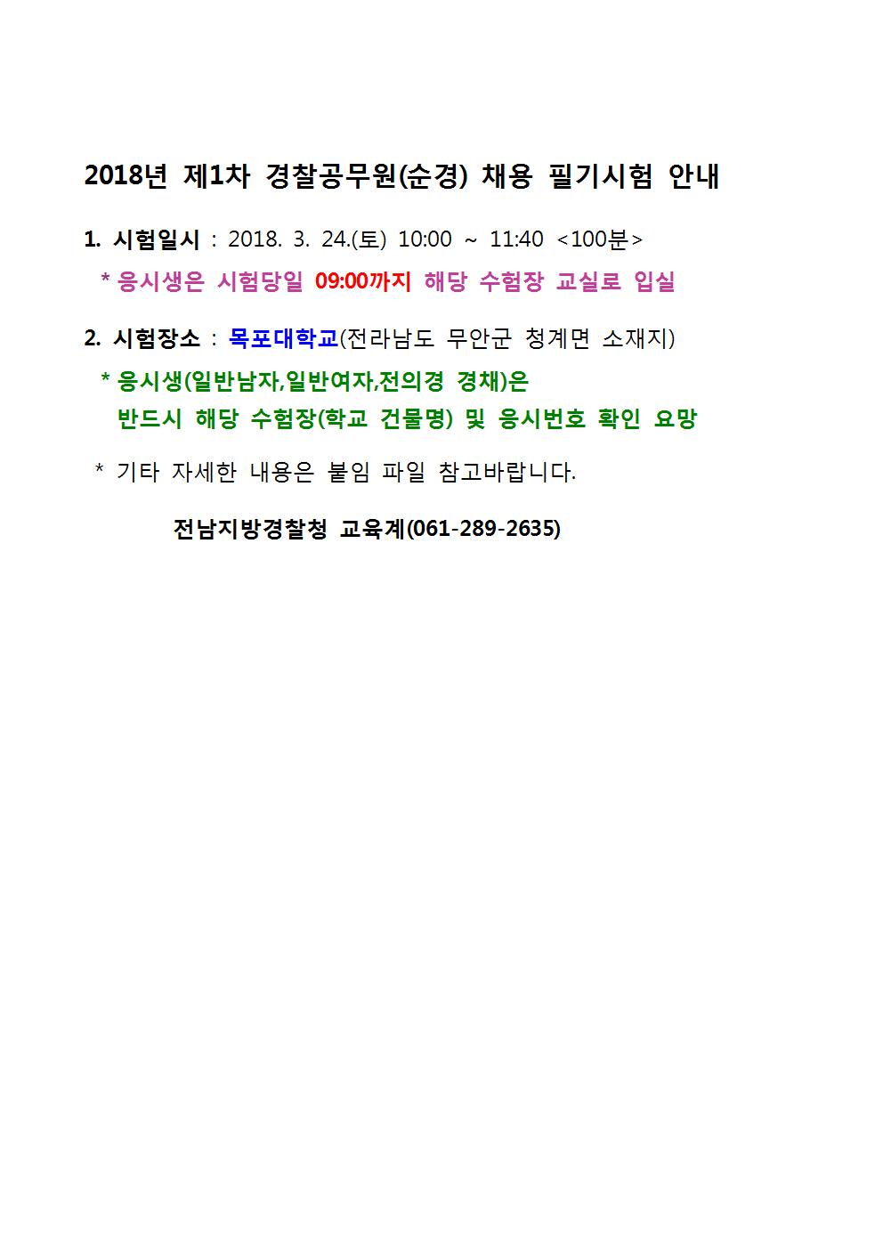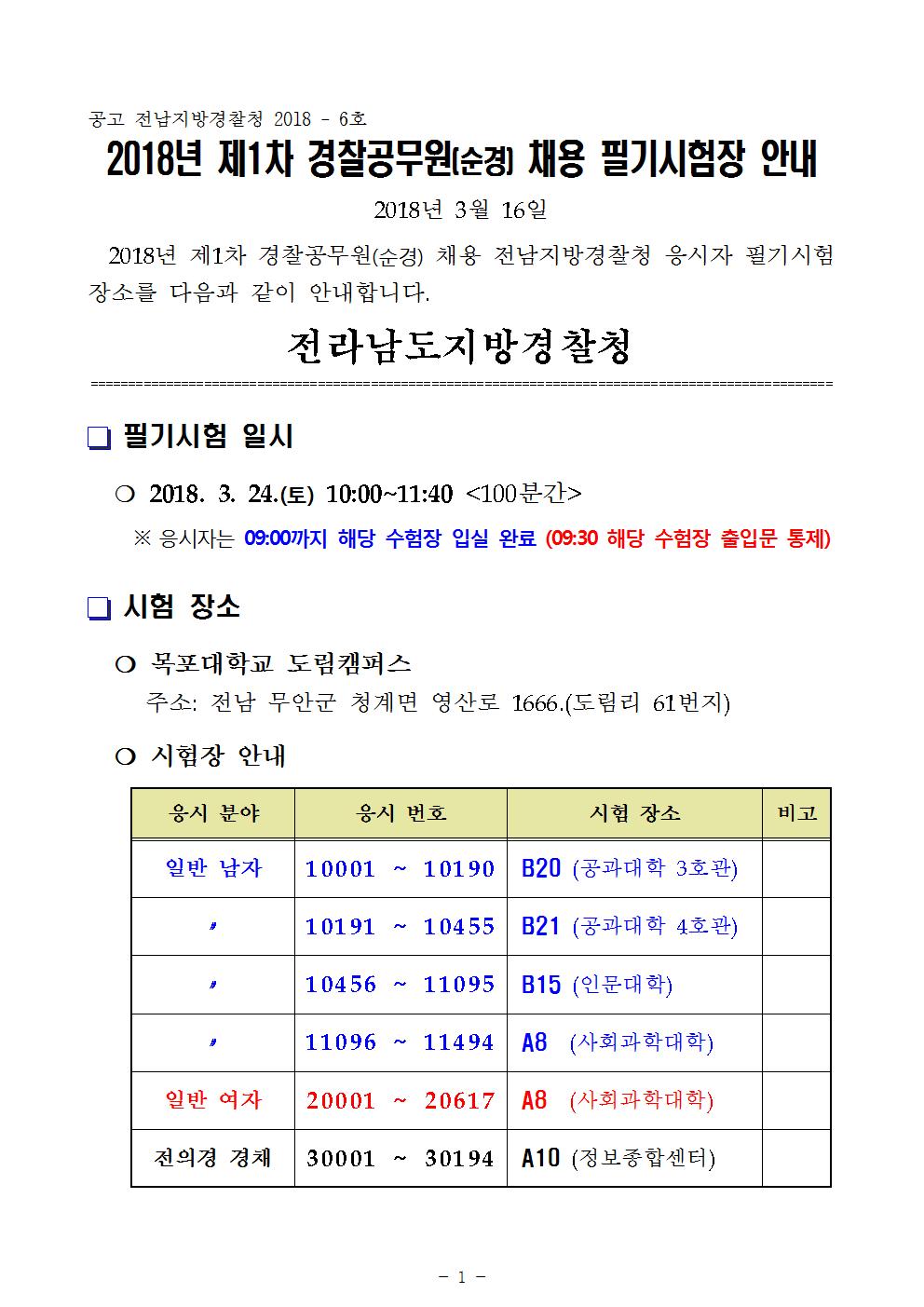 [전남청] 2018년 제1차 경찰공무원(순경) 채용 필기시험장 공지 페이지 정보 작성자 중앙경찰학원 댓글 0건 조회 4,615회 작성일 18-03-10 16:56 목록 본문 . 이전글[전북청] 2018년 제1차 경찰공무원(순경) 채용 필기시험장 공지 18.03.10 다음글[대구청] 2017년 제2차 경찰공무원(순경) 채용 필기시험장 공지 18.03.10 목록 글쓰기 수정 답변 삭제