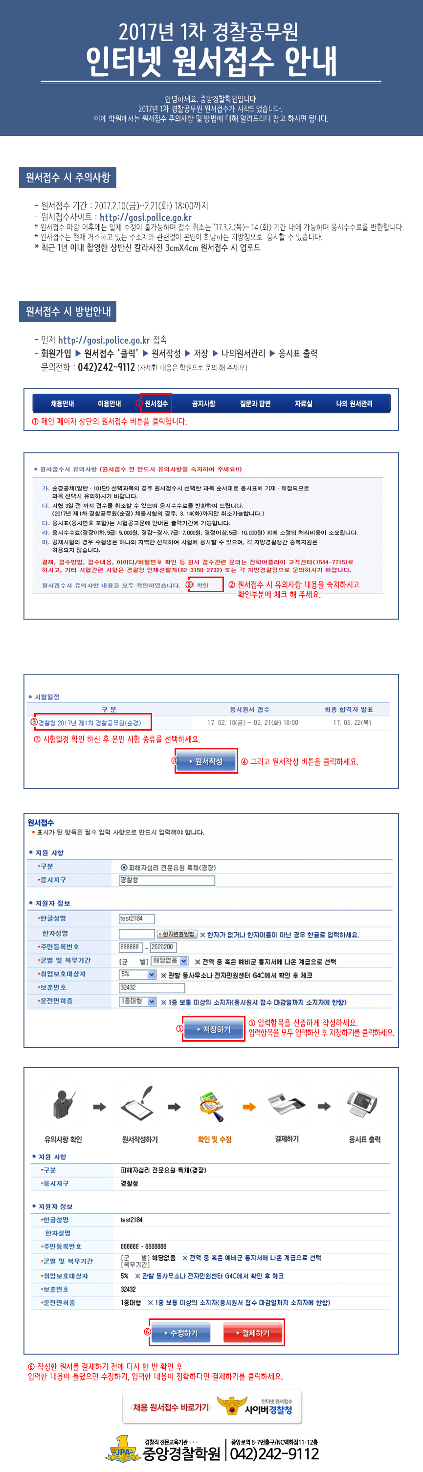 2017.1차 경찰공무원시험 인터넷 원서접수 방법안내 > 채용공고 | 대전중앙경찰학원