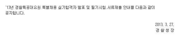 2013년도 경찰특공대 특별전형 실기합격자 발표 및 필기시험 서류제출안내