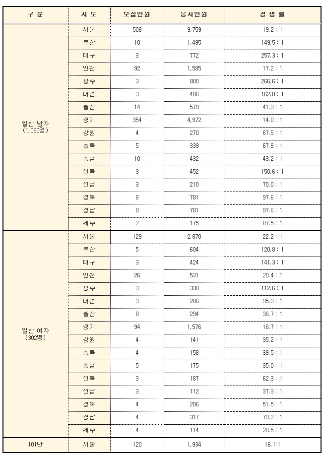 [경쟁률] 2013년 1차 순경시험 응시원서 접수 결과