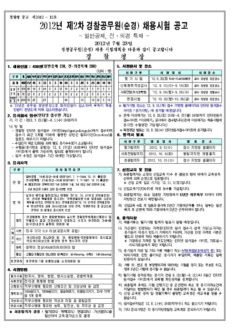 2012년 제 2차 경찰공무원(순경) 채용시험 공고
